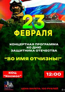 Концертная программа, посвященная Дню защитника Отечества «Во имя Отчизны» состоится: